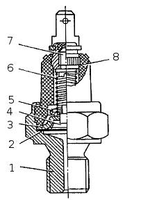 неподвижный; 4 толкатель; 5 - контакт подвижный; 6 - пружина;7 - винт