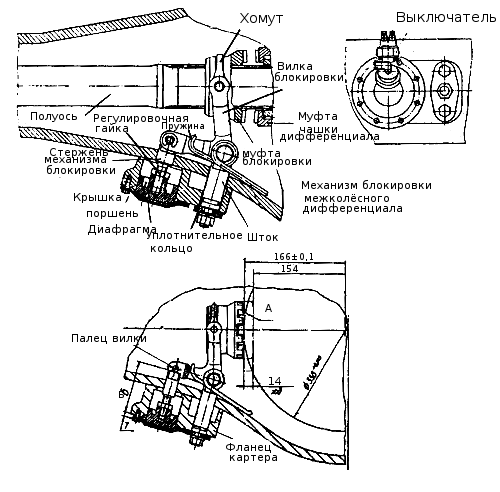 Рис. 196. Механизм блокировки колесного дифференциала