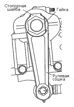 На модернизированных автомобилях КАМАЗ изменено крепление рулевой сошки см. рис. 271. Вместо стяжных болтов, гаек и шплинтов для крепления применяется гайка со стопорной шайбой.