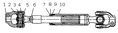 Скользящее шлицевое соединение карданного вала обеспечивает возможность изменения расстояния между шарнирами при опрокидывании кабины и служит для компенсации неточностей установки кабины с колонкой рулевого управления относительно рамы с рулевым механизмом, а также их взаимных перемещений.